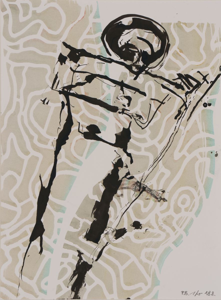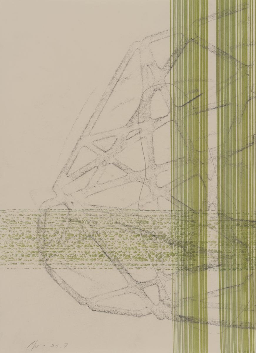 In diesen Arbeiten wird handschriftlicher Ausdruck vermieden bzw. reduziert durch den Einsatz von Hilfsmitteln wie Schablonen, Linealen, Zirkeln einerseits und zufallsabhängige Zeichengeräte und Techniken andererseits.